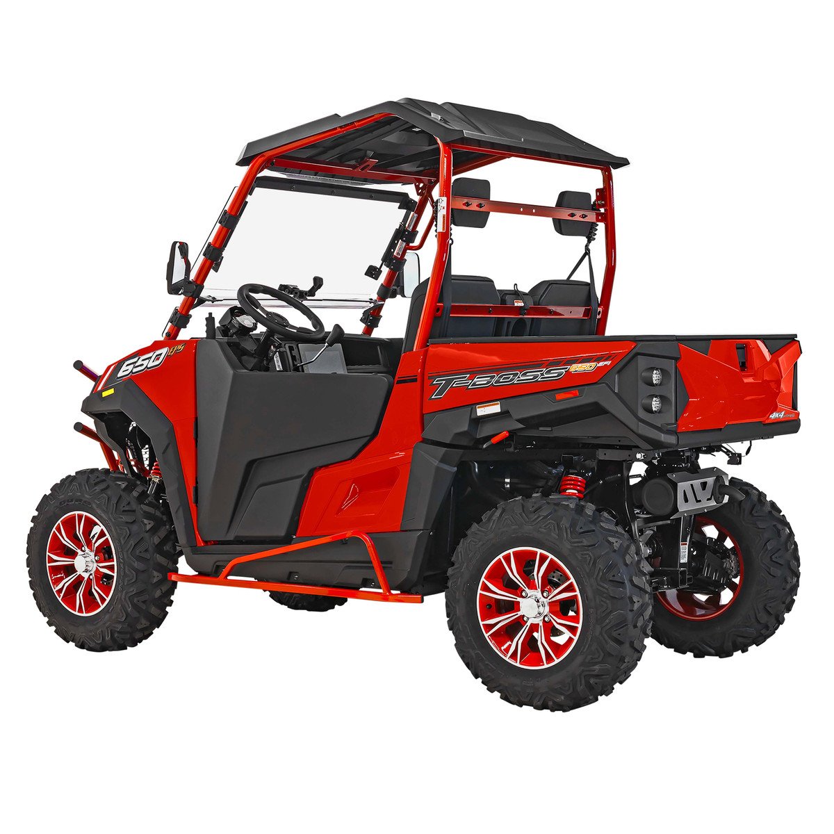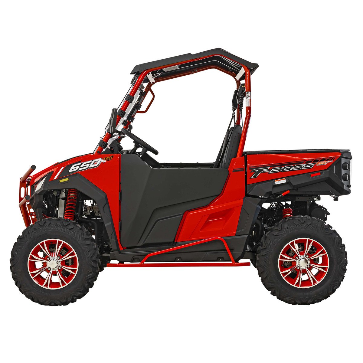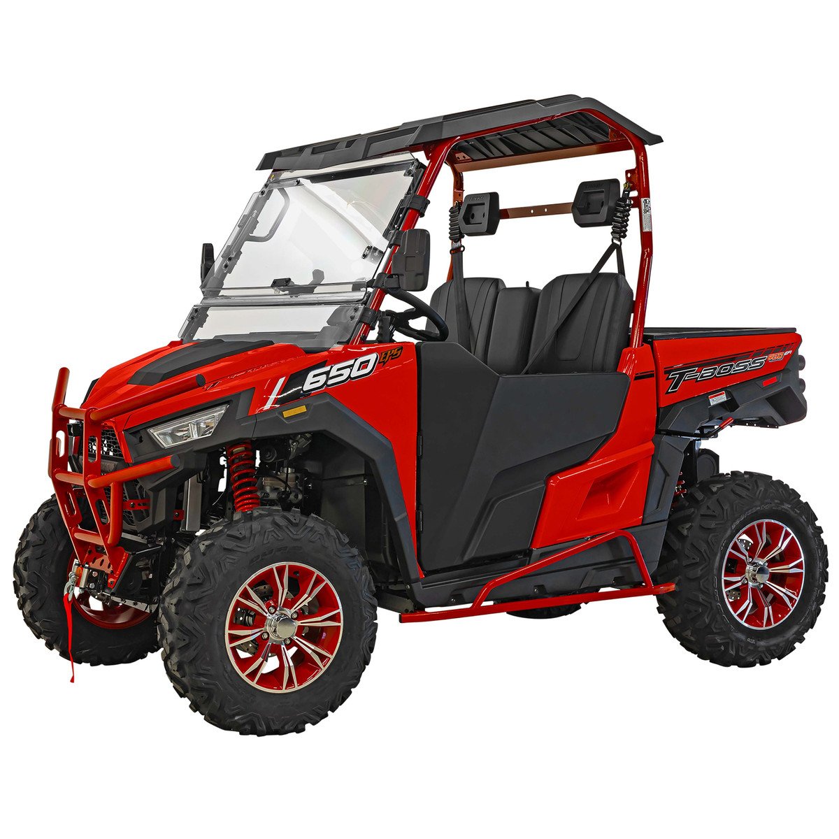 Middleweight Class Champ and fan-favorite, the Matrix T-BOSS 650 combines power, size, agility, and flexibility to satisfy off-road enthusiasts and trail explorers. Its 585cc 42HP engine kicks up dirt, while 39lb/ft of torque and up to 1500lb towing capacity get you and your friends to the finish line. With a 57-inch width and a 72-inch wheelbase, the T-BOSS 650 remains stable in sand, mud, snow, and rock. Oversized 27-inch all-terrain tires and four-corner independent suspension let you set the pace on the trails. The shaft-driven 4WD with locking differentials ensures less time stuck in the mud and more time enjoying the adventure.