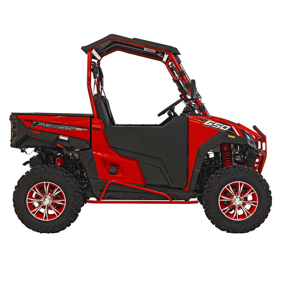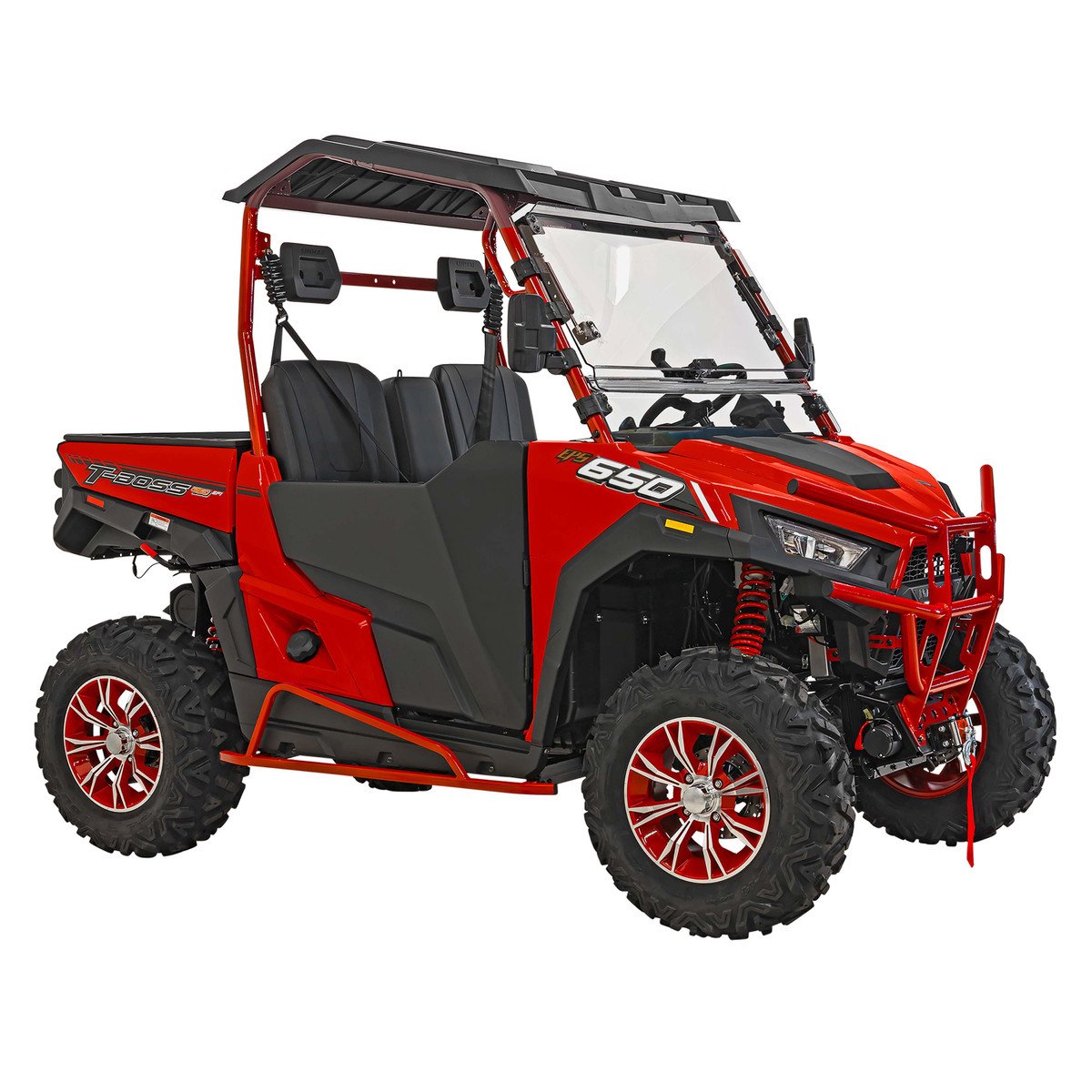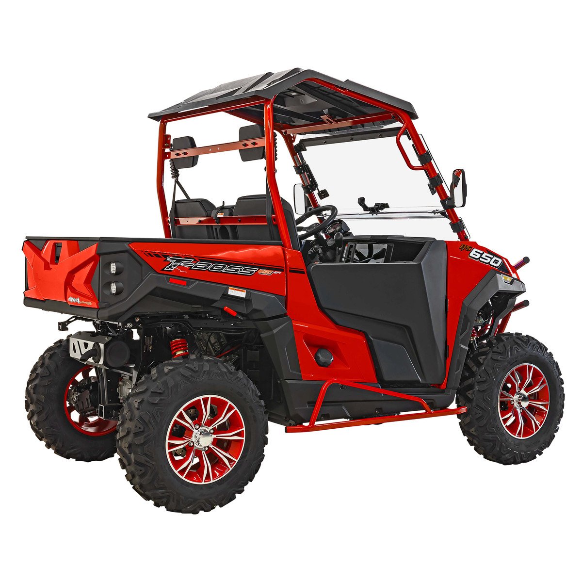 Middleweight Class Champ and fan-favorite, the Matrix T-BOSS 650 combines power, size, agility, and flexibility to satisfy off-road enthusiasts and trail explorers. Its 585cc 42HP engine kicks up dirt, while 39lb/ft of torque and up to 1500lb towing capacity get you and your friends to the finish line. With a 57-inch width and a 72-inch wheelbase, the T-BOSS 650 remains stable in sand, mud, snow, and rock. Oversized 27-inch all-terrain tires and four-corner independent suspension let you set the pace on the trails. The shaft-driven 4WD with locking differentials ensures less time stuck in the mud and more time enjoying the adventure.